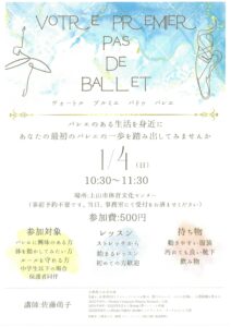 ヴォートルプルミエパドゥバレエ(クラシックバレエ)教室の1月開催日が決定いたしました。